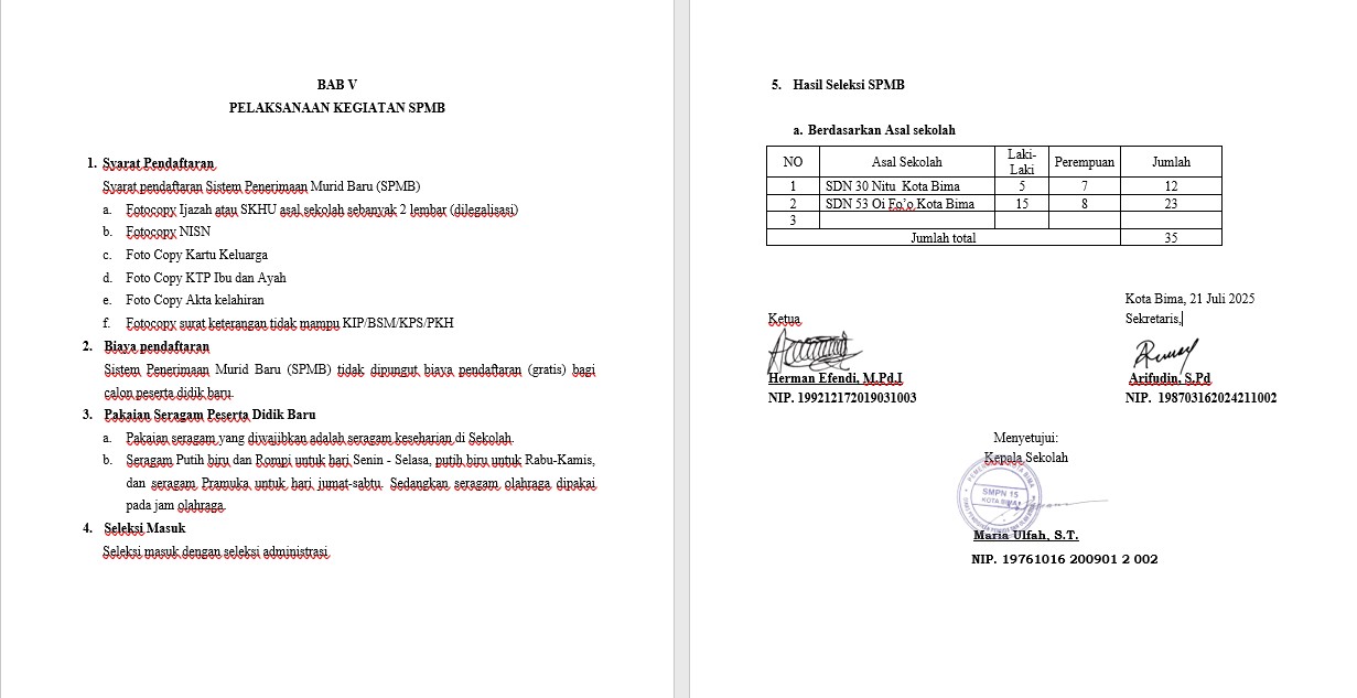 HASIL SPMB SMP NEGERI 15 KOTA BIMA TAHUN 2025 /2026